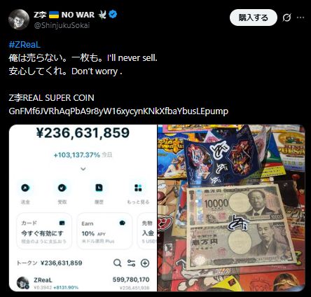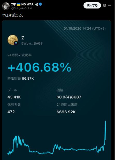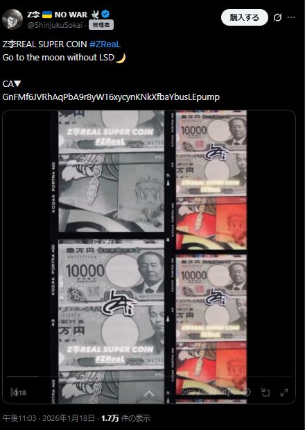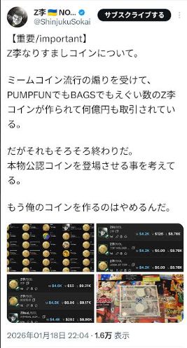 その流れに対し、Z李本人はXで明確に不快感を示し、「もう俺のコインを作るのはやめろ」「本物公認コインを登場させることを考えている」と発言。そしてその予告通り、ついに公式を名乗るコインが「1/18 23時くらいに」世に出た。